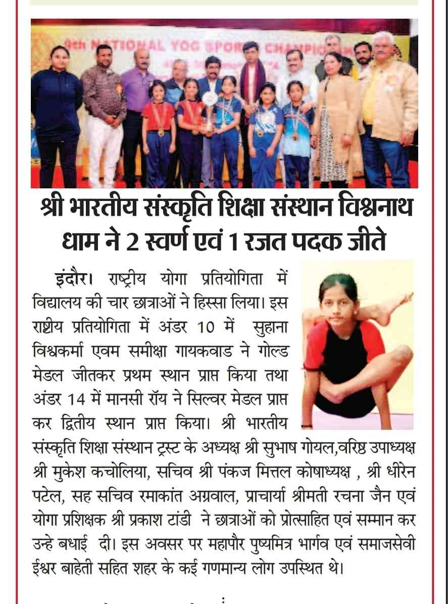 Another proud moment for *SBSSS FAMILY In the National yoga competition Suhana Vishwakarma and Samiksha Gayakwad (under 10) secured First position in team event and Mansi Rai (under 14) secured second position in team event.